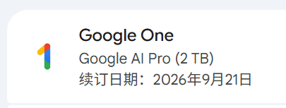 Google One家庭组邀请(2026/09/21 到期)
